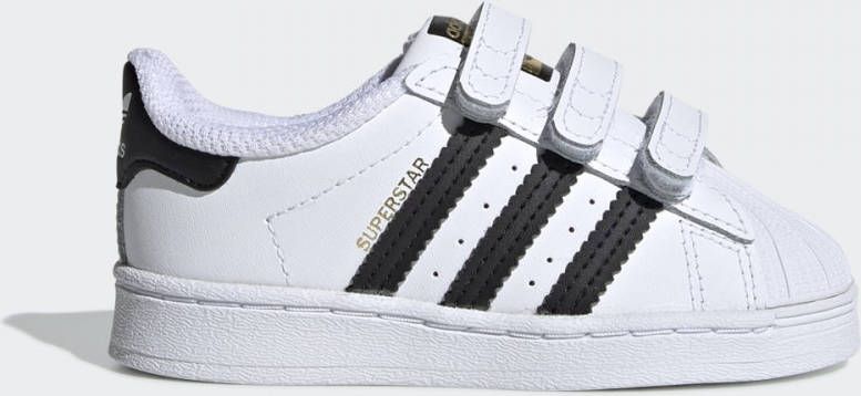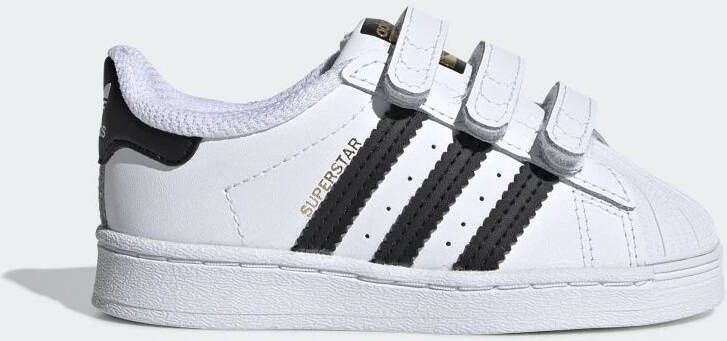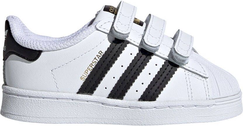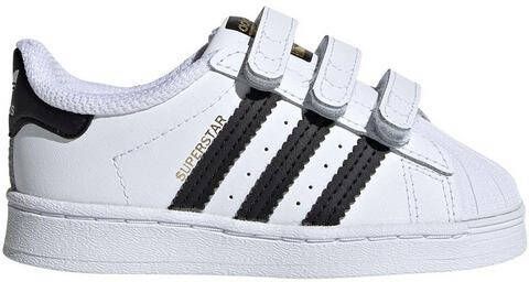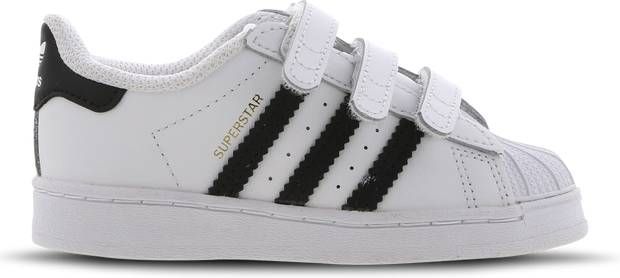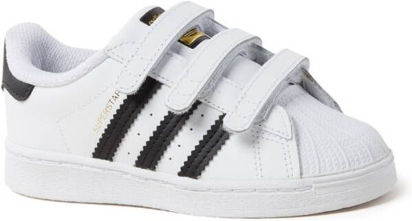 adidas Originals Superstar, sneakers voor jongens en meisjes met klittenbandsluiting in een leer met textile. Deze coole sneakers, uit de collectie all season basics, in de kleur wit en zijn verkrijgbaar in de maten 19 t/m 27. Op de zijkant een print met de tekst SUPERSTAR en achter het logo van adidas Originals. De binnenkant is gevoerd met zachte polyester en de rubberen zool heeft een antislip laag. De sneakers hebben OrthoLite inlegzooltjes, deze bieden een ademend vermogen, vochtafvoer en een anti-microbiële werking.