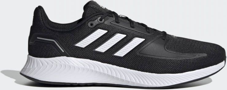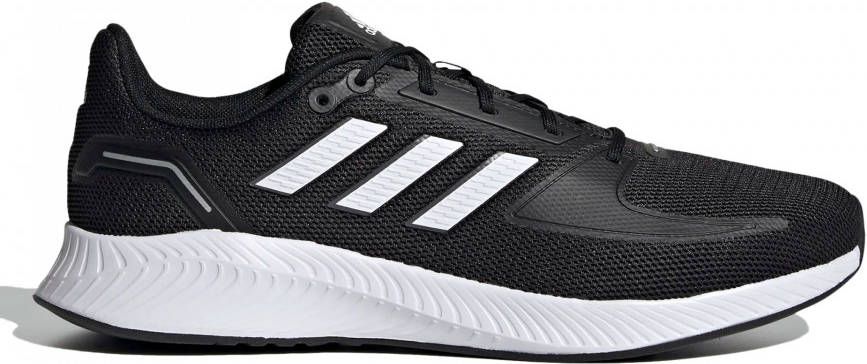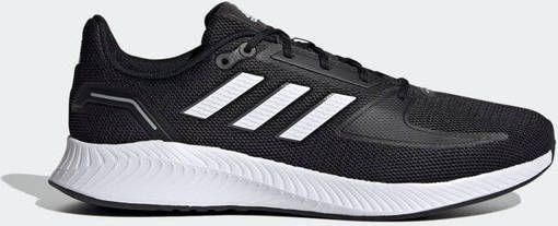 Met de zwarte Runfalcon 2.0 hardloopschoen voor heren ben je klaar voor iedere dag. Het maakt niet uit of je dag is gevuld met sportieve activiteiten of dat je de schoenen even aantrekt om naar de supermarkt te gaan. De herenschoenen brengen je overal comfortabel naartoe zodat jij iedere dag relaxed doorkomt. Met de EVA middenzool wordt iedere stap gedempt terwijl de robuuste rubberen buitenzool je een stevige basis geeft om op te lopen. Je komt gegarandeerd met een aangenaam gevoel op iedere bestemming terecht.- Pronatietype: Neutraal_- Bovenwerk: Mesh_- Voering: Textiel_- Middenzool: EVA, voor lichtgewicht schokdemping_- Buitenzool: Rubber_- Sluiting: Veter_- Naadloze hiel: Voor extra ondersteuning_- adidas 3-Stripes: Zijkanten_- adidas-logo: Op de tong_.