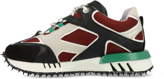 SneakersHacker 66430-CN-3665 voor dames van het Nederlandse label Bronx. Deze runners hebben een bovenwerk van mesh, leer en suède in bordeauxrood, off-white en zwart. De binnenkant is gevoerd met zachte mesh en de lederen binnenzool is uitneembaar. De rubberen zool met opvallende zwarte/witte spikes heeft een hoogte van circa 3 cm. Ook de groene kunststof stabilizer met Bronx-logo en de matching groene afwerking zijn toffe details. Two-tone veters en een transparant merklogo op de tong geven je some awesome style. Kleur: multi. (Grey/White/Wine).