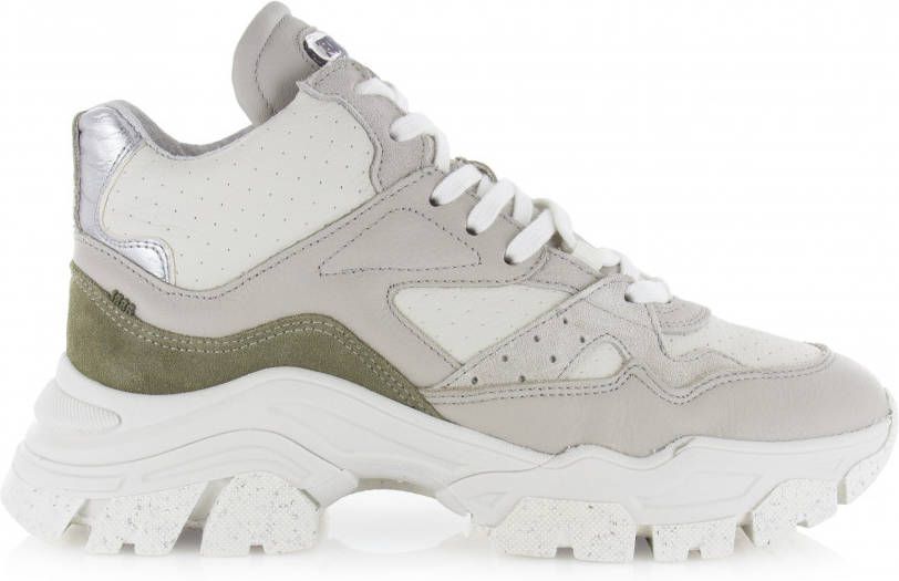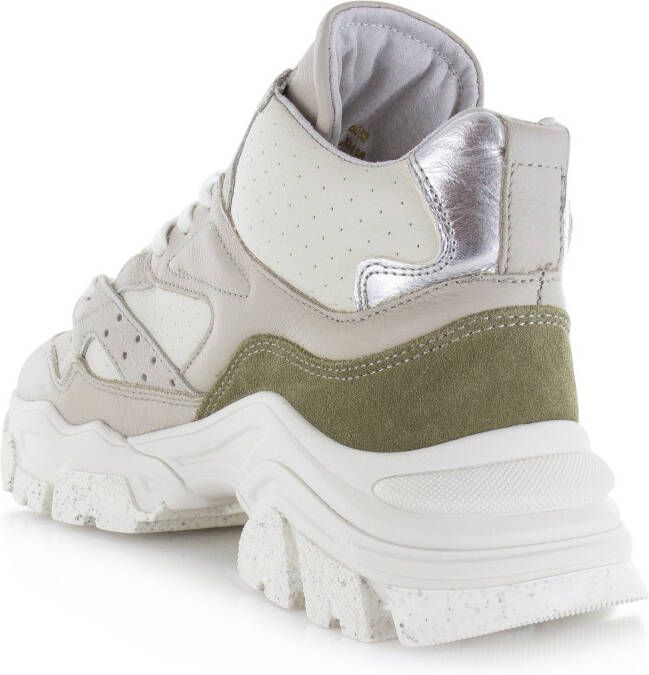 De TAYKE OVER (47309C-AC-132 clay/off white/olive) van het merk Bronx. Deze sneaker voor dames is gemaakt van leer en heeft groene en grijze overlays. De stoere hoge sneaker met een mooie kleurencombinatie is voorzien van stiksel details en een grove zool. Til je outfit naar een hoger niveau met de Bronx TAYKE OVER!