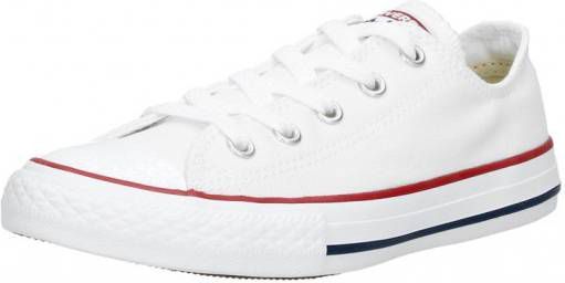 Converse Chuck Taylor All Star Optical White sneakers voor kids. Het bovenwerk van deze Converse meiden sneakers is geheel van canvas materiaal. De binnenvoering is volledig van textiel. Dit model van Converse 3J256C beschikt over een vaste binnenzool. De witte Converse sneakers zijn ook dit seizoen weer een échte musthave! Herkenbaar is de bekende rubberen Converse zool.