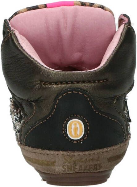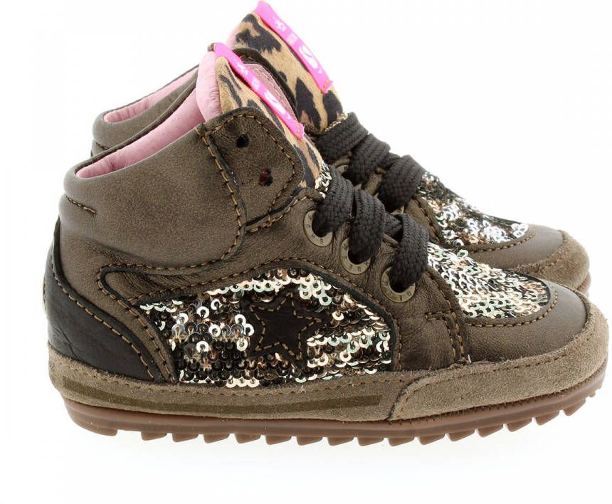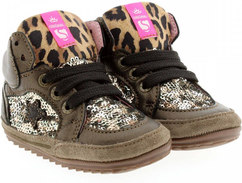 Bruin metallic babyschoentje met pailletten en leopard details van het merk Shoesme.