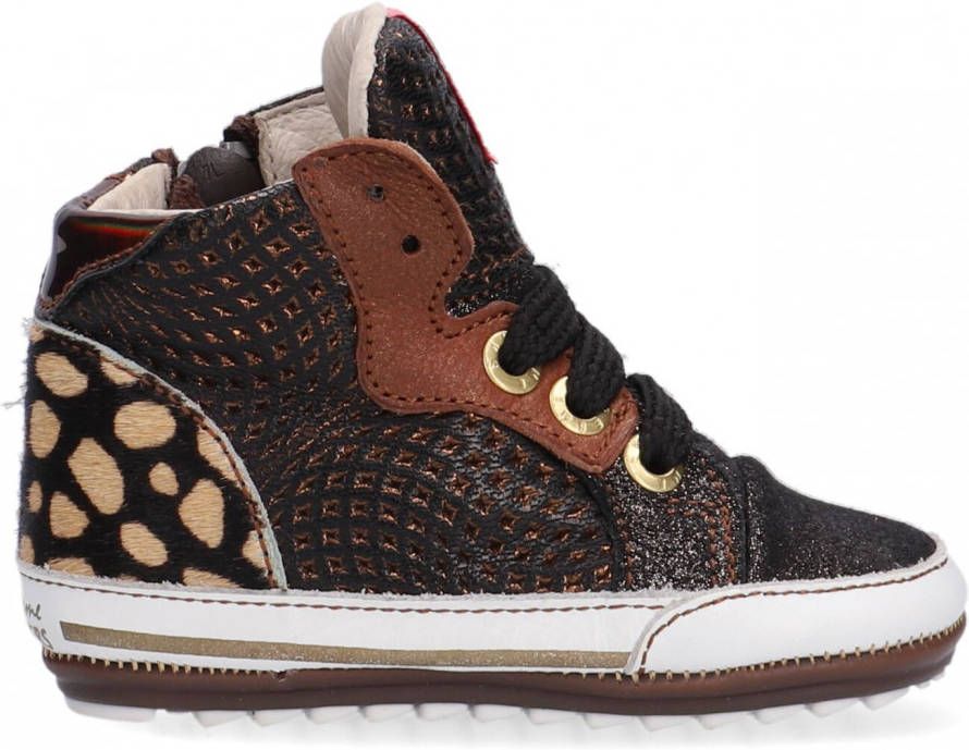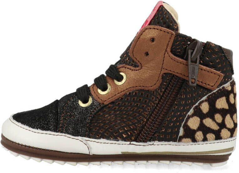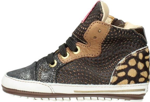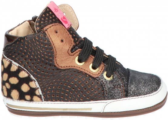 Bruin babyschoentje met glitter en leopard details van het merk Shoesme. Deze kleine schoentjes zijn gemaakt van leer en hebben een soepele loopzool gemaakt van kunststof. De schoen heeft een veter- en ritssluiting. Het perfecte schoentje om de eerste stapjes mee te zetten!.