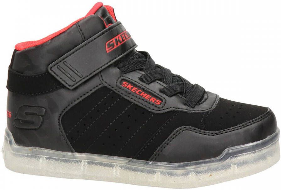 Skechers Ice Lights hoge sneaker met veters en klittenbandsluiting voor jongens in de kleur zwart. Deze gave sneaker heeft een bovenwerk van imitatieleer en de binnenkant is gevoerd textiel. De sneaker kan opgeladen worden met de bijgeleverde USB-kabel. Maak je outfit compleet met deze gave schoenen!.