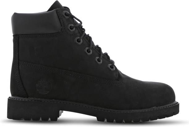 Timberland Shoes 6in Prem, schoenen met vetersluiting voor jongens in de kleur zwart. Deze stoere schoenen uit de Timberland Shoes all season collectie, zijn gemaakt van leer en leuk voor onder een spijkerbroek. Op de zijkant een gestanste print met het logo van Timberland en de schoenen hebben dubbele gestikte naden. De binnenkant is gevoerd met polyester en de rubberen non marking zool heeft een antislip laag.De schoenen hebben uitneembare OrthoLite inlegzooltjes, deze bieden een ademend vermogen, vochtafvoer en hebben een anti-microbiële werking.Deze schoenen vallen wat wijd, kies een maat kleiner voor smalle voeten.